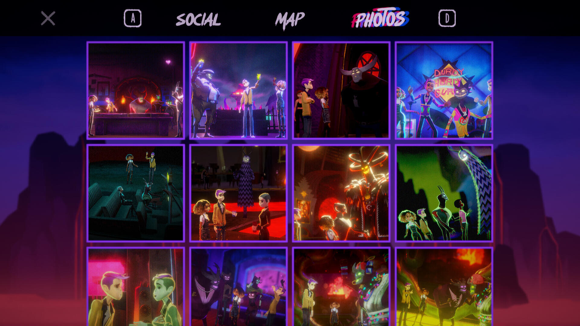 Night School Studio's third title, Afterparty, is a walk-and-talk sidescroller following two characters, Milo and Lola, as they try to gatecrash and subsequently drink their way out of hell. It's reminiscent of its precursor Oxenfree, but where Oxenfree shines, both in replayability and design, Afterparty falls just short.Like Oxenfree, Afterparty's relatively minimal. There's no real HUD, and the only real screens aside from active gameplay and the settings menu are the pause menu and its subsections; in Afterparty''s case, this would be the map, photo album, and its one real deviation from Oxenfree's design standard— Bicker, Hell's equivalent of Twitter.